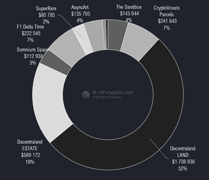 The value lies mainly in the metaverse and more precisely Decentraland, with more than 70% of the value in LAND & ESTATES.