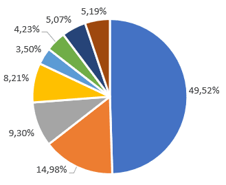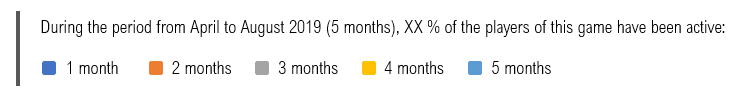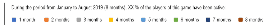 - And so on until the brown zone at the top of the pie chart, which represents the percentage of players who have been active over the months (8 months out of 8)