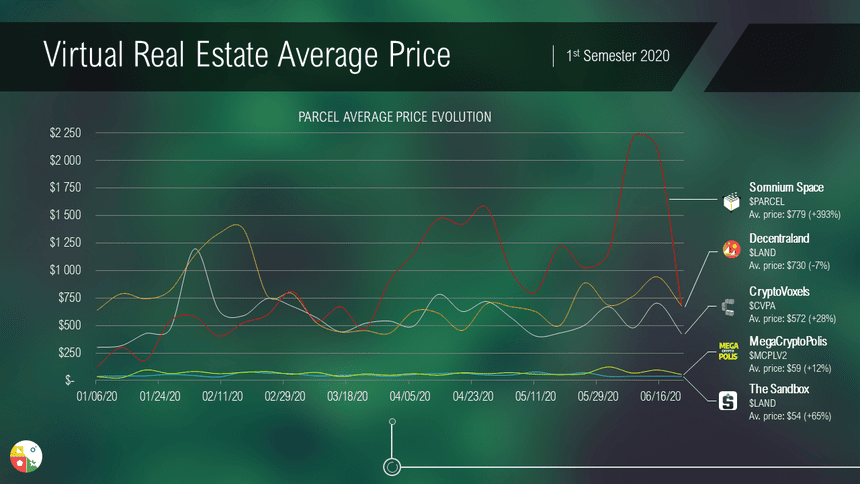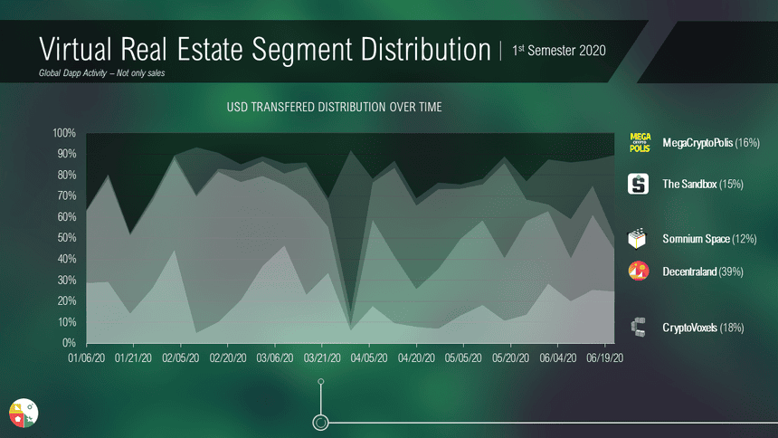 The fourth and last article in our series of analysis on the first half of 2020 offers you a concentrate of insights on the Virtual Real Estate segment, a segment that has historically driven the growth of NFTs with the first $LAND Auction of Decentraland in late 2017.