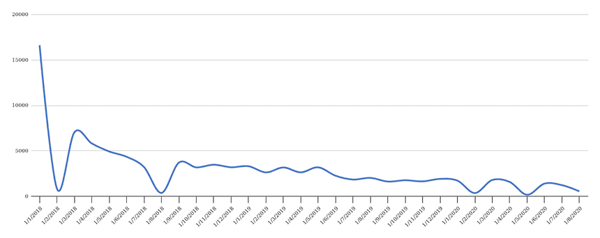 Despite very expensive transaction fees during this period and the very low price of Ethereum, the number of transactions for CryptoKitties managed to hold up overall in 2018. Transactions managed to pick up again during the year thanks to the updates of the project but the year 2019 marked a gradual decline over time.