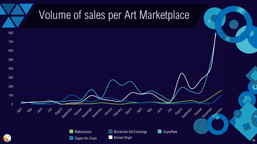 - The secondary market is still very weak for these early days of Art Blockchain. This lack of liquidity represents one of the challenges that the NFT art segment will have to manage in the next stages of its development.