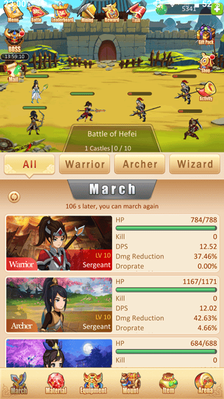 This game is an Idle / Role Playing Game (RPG). This means that the game will take place even while you sleep. All you need to do is upgrade your heroes so that they can find more and more rare materials as you progress through the levels. These materials are used to create new armor or weapons, which can be equipped or resold. Once your heroes are dead in battle, you can revive them to start the adventure from the beginning.