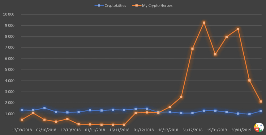 And finally, we offer this graph illustrating the importance of My Crypto Heroes in the gaming ecosystem on the blockchain. CryptoKitties being the most played blockchain game in 2018 …