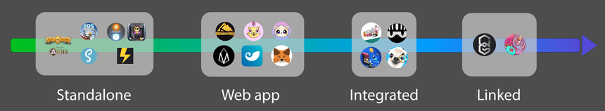 This method of connecting between games is also widely used in the EOS universe. Each action in the game requiring your wallet was recorded on the blockchain in complete transparency, and the ability to “whitelist” certain interactions made blockchain solicitation invisible.
