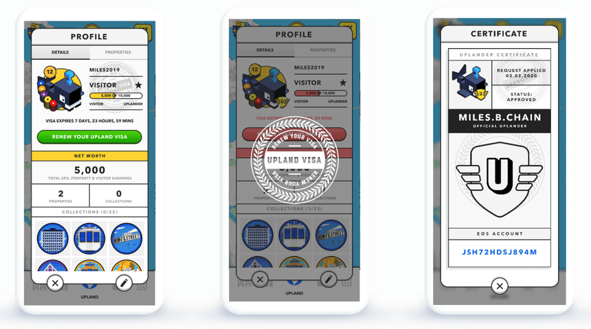As a visitor, you will get a “visa” that will allow you to continue your adventure but, you only have limited capabilities. For instance, you can not buy or sell properties in the open marketplace. You must renew your visa at least once a week simply by logging in into Upland, otherwise, if you haven’t, your account and assets (and therefore, income generation) will be recycled back into the game economy.