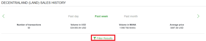 2- from the Decentraland page on NonFungible, I apply the criteria listed above in “Filter Results”
