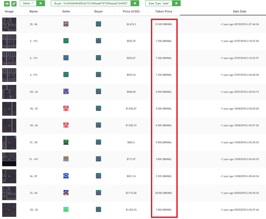 I have in front of me the list of all the sales of a specific Wallet address (cf 4), so I know the turnover he generated by selling these 11 LANDs. But did he make any money on these sales, and if so, how much?