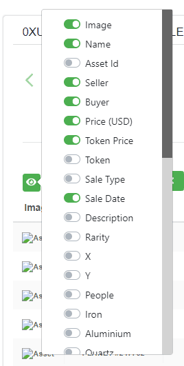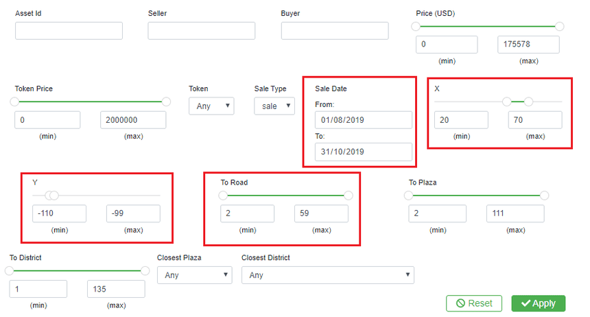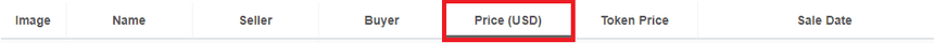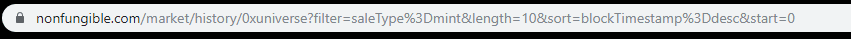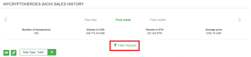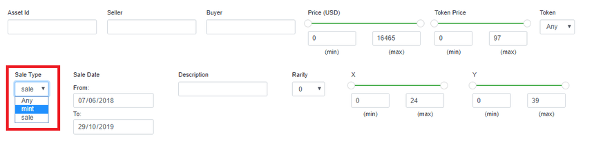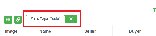 2 – Once on the project page you notice that a filter is already applied by default “Sale Type: “sale”“. This means that only sales between players are displayed by default.