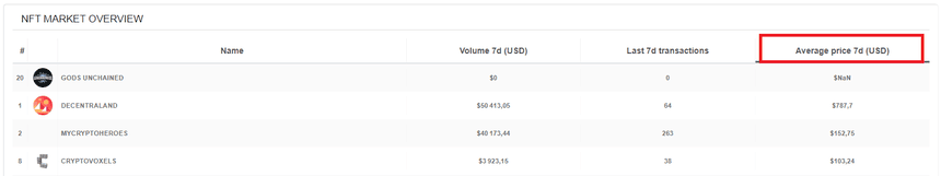 3 – the project with the most expensive assets so far is Decentraland with an average price of $787, far ahead of all the others!