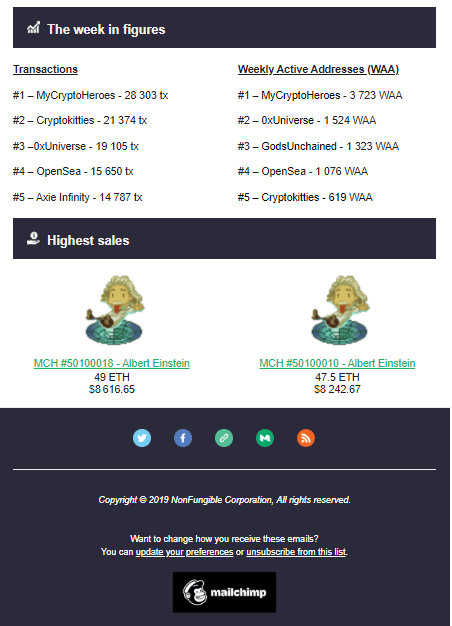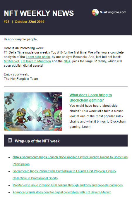 2 – The NonFungible.com team publishes a newsletter every Tuesday bringing together all the information on the NFT ecosystem: