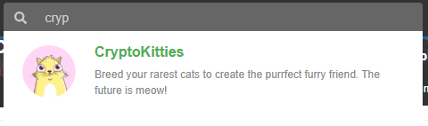 1 – Go to the page of the project that interests you, here “CryptoKitties“, from the search bar