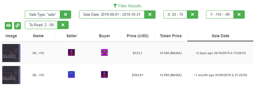 Arriving on Decentraland’s market page, I notice that one address has sold several expensive assets in recent days. Is it just a coincidence or an active flipper?